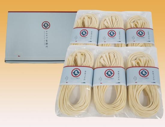 そうめんの製法でつくったうどんです。うどんのコシと手延べそうめんのようなツルツルとしたのど越し、乾麺とは違ったもちもちさをお楽しみください